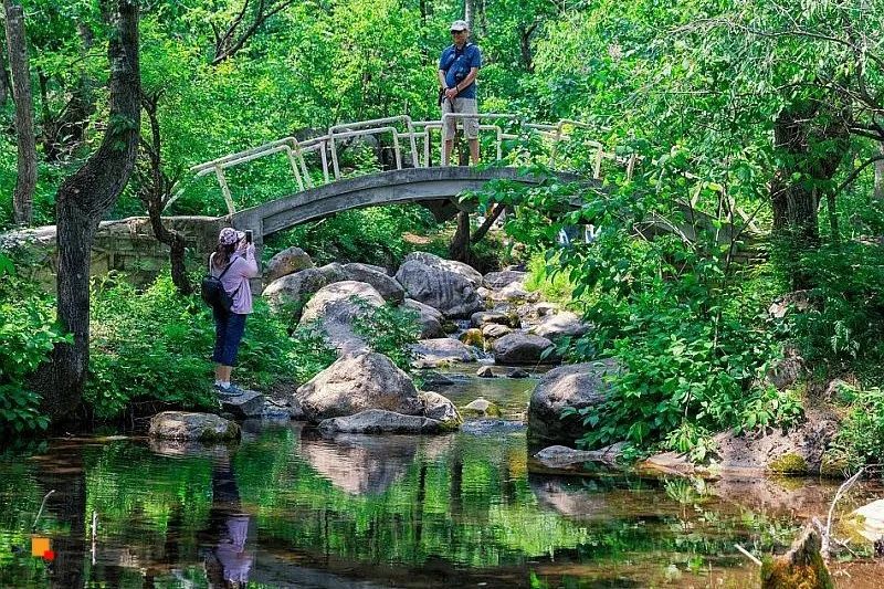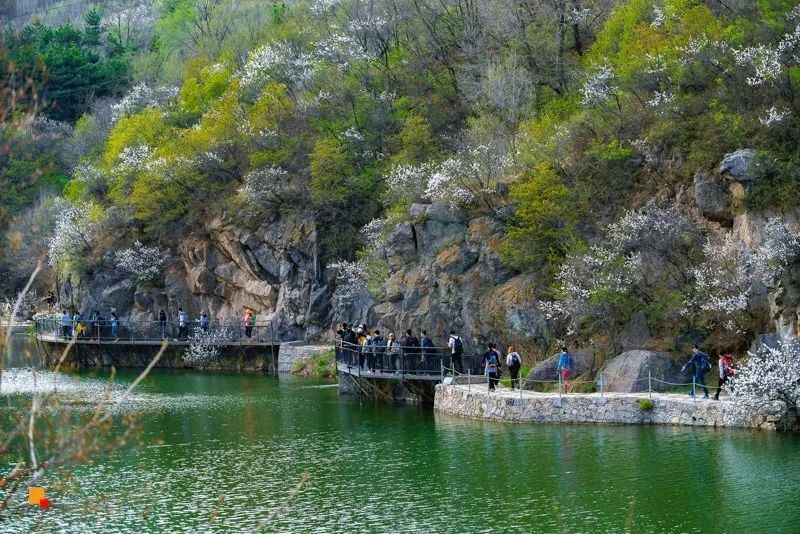 高峡平湖景区,明湖水面12万平方米,镶嵌于绿色山谷间,游人在此或泛舟垂钓、或观赏禽鸟戏水、或寄意候鸟翔集,也可到湖东龙庆峡谷探幽。玉渡山景区郁郁葱葱,是一片绿的世界。