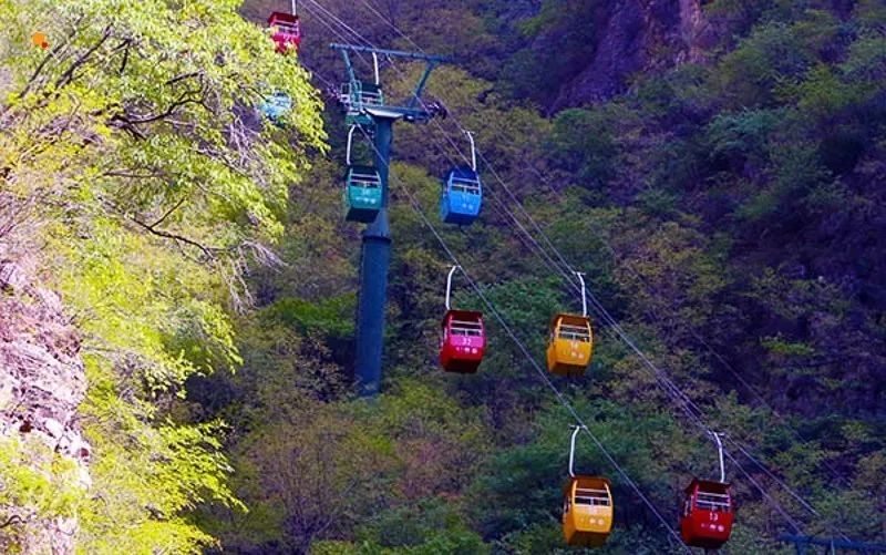 然后乘龙梯上到大坝顶,坐船游览龙庆峡,从金刚寺码头下船,游览金刚寺景区,然后从月亮湾码来头上船,回到百花洞口,坐缆车上神仙苑,坐缆车下山到百花洞口,出龙庆峡。