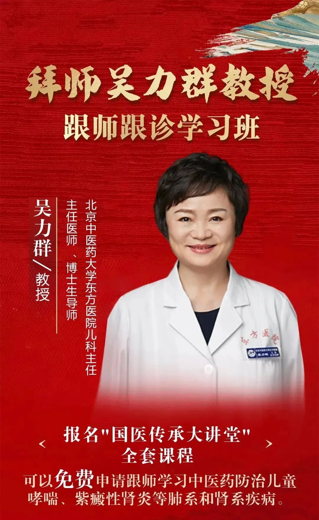 ▲吴力群 知名专家 北京中医药大学东方医院儿科主任,儿科教研室主任,国家中医药管理局“十二五”中医