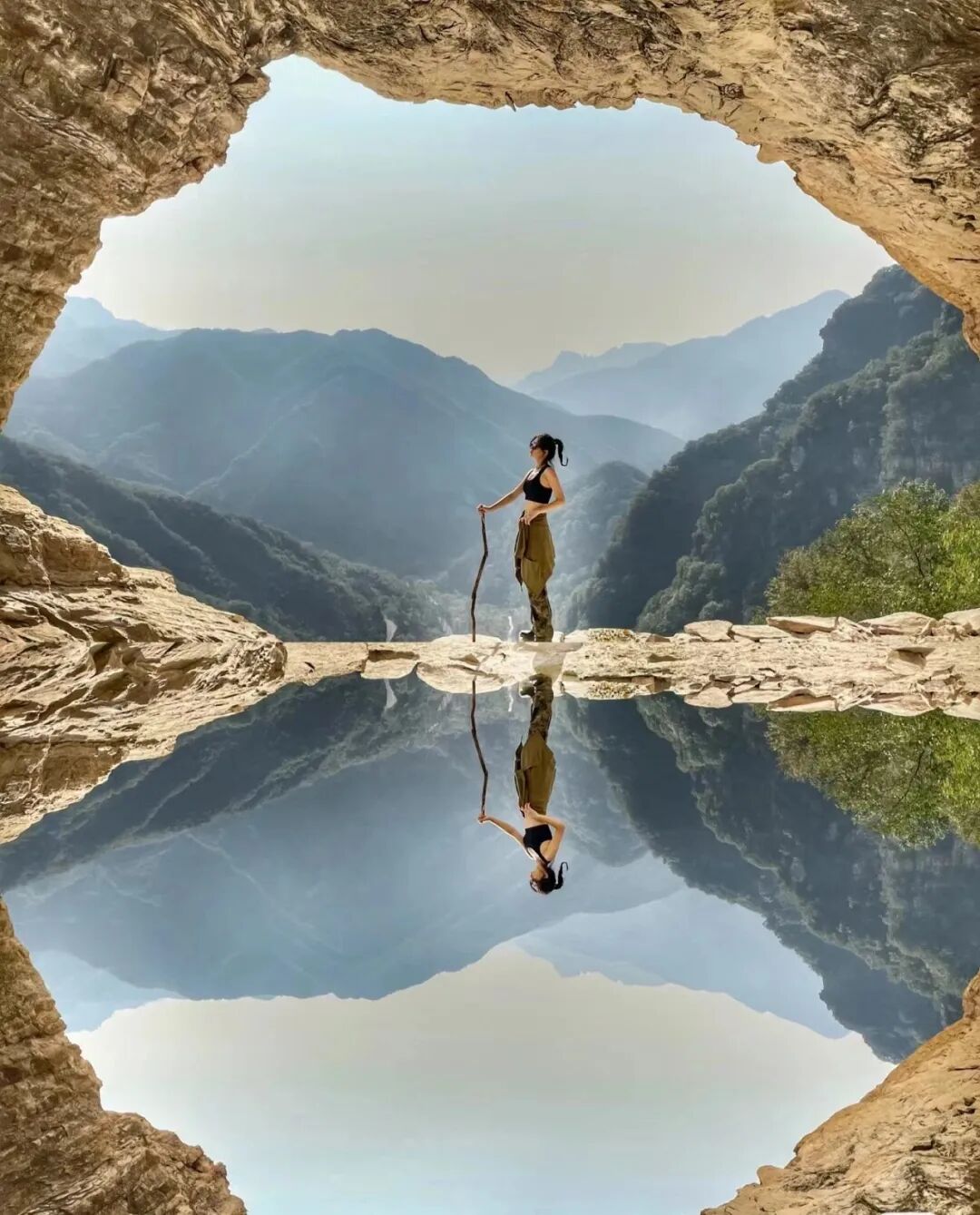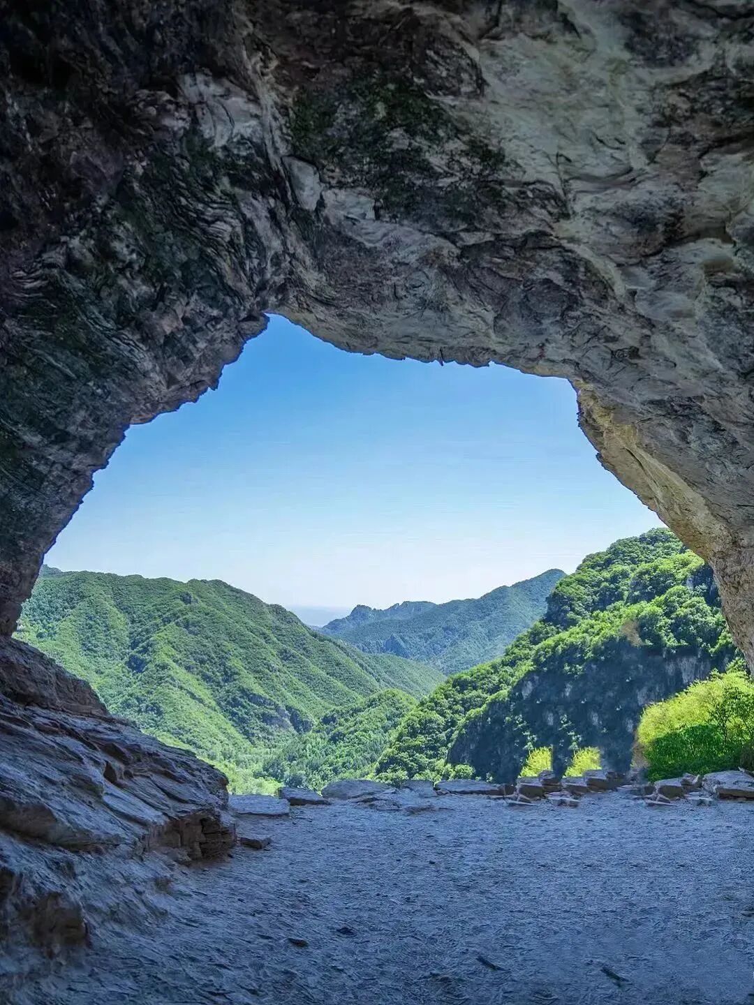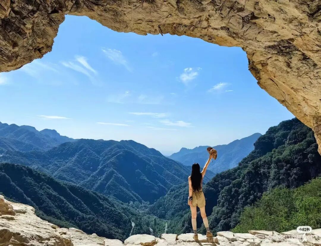 清凉山洞,拱形的洞府里面宽敞又凉快,视野也不错,站在洞口欣赏远山或俯瞰脚下,美到窒息。