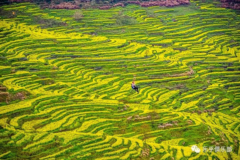 这主要在欣赏油菜花景观的角度不同。在篁岭赏油菜花,最大的不同就是人的视线是从高处朝下看,俯视的效果比在平原地面上赏花,更加具有立体感。篁岭古村是梯田的制高点,景区还在山岗上搭建了观景平台,以及两座高空铁索桥,还有两个高山缆车,都为游客从高处欣赏油菜花提供了便利条件。
