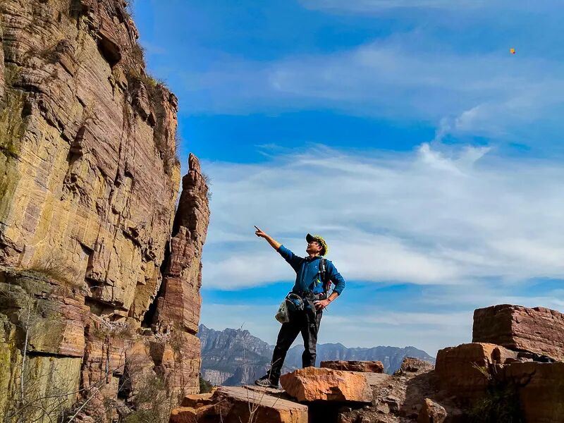 五连洞挂壁路线有六个断崖,由六个简陋的梯子连接,坡度大且悬崖多,需要有一定的攀爬能力和胆量,恐高者需谨慎。