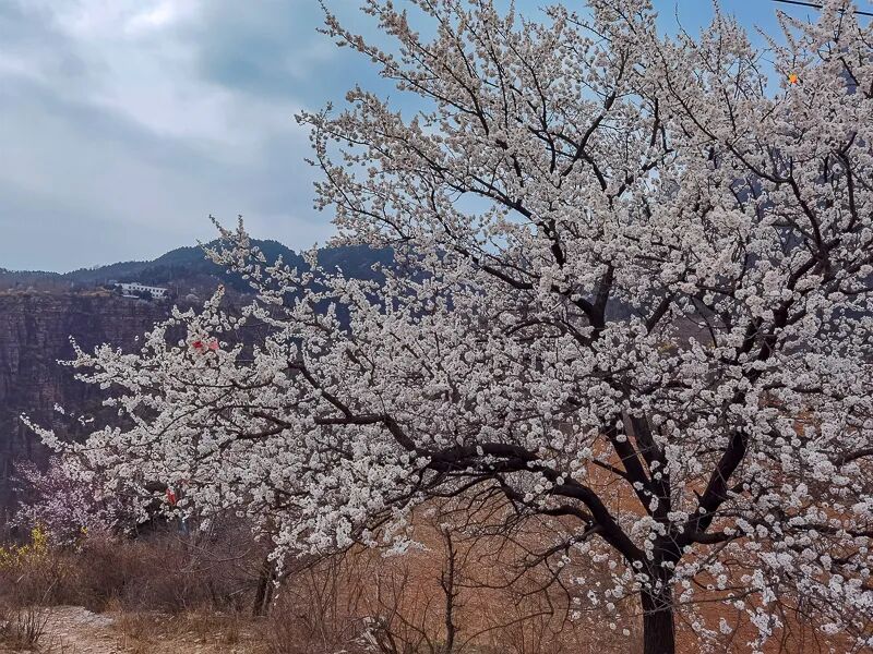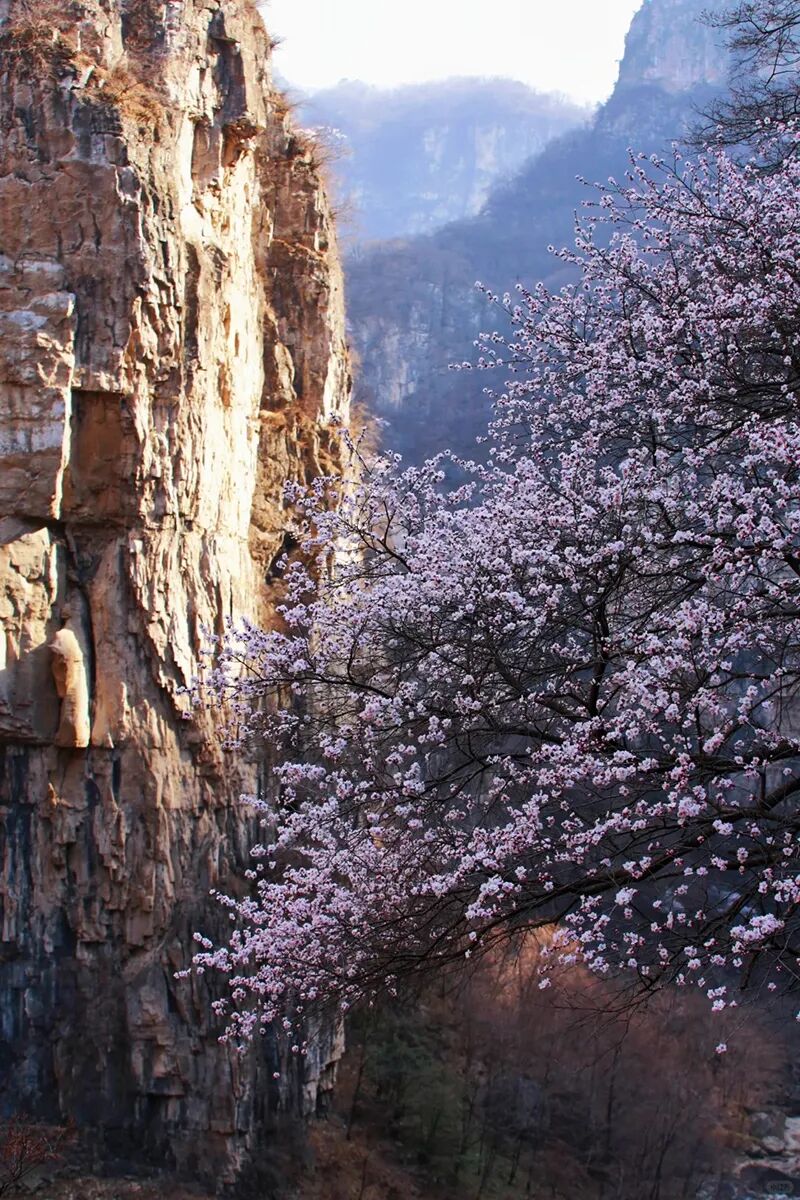 从兵部站前往桃花谷,春季时桃花盛开,漫山遍野的桃花非常壮观,与太行山的雄伟壮阔相得益彰。