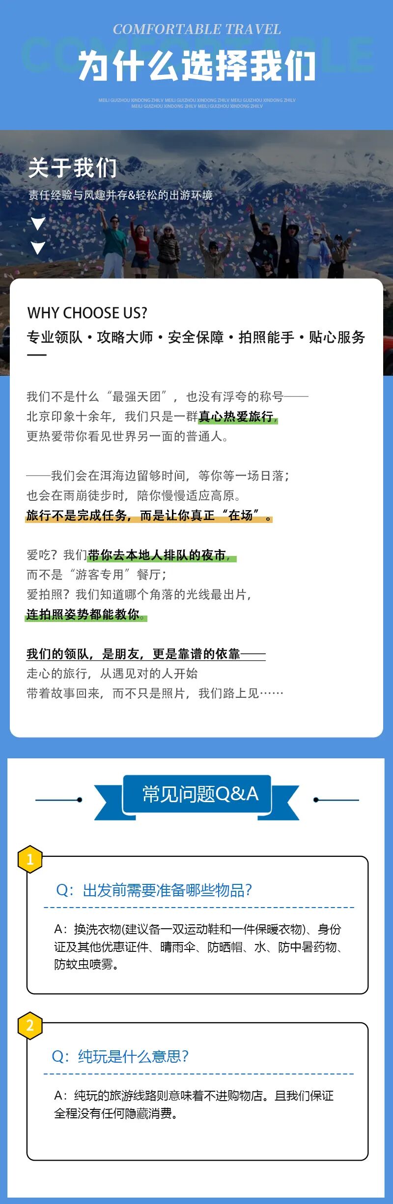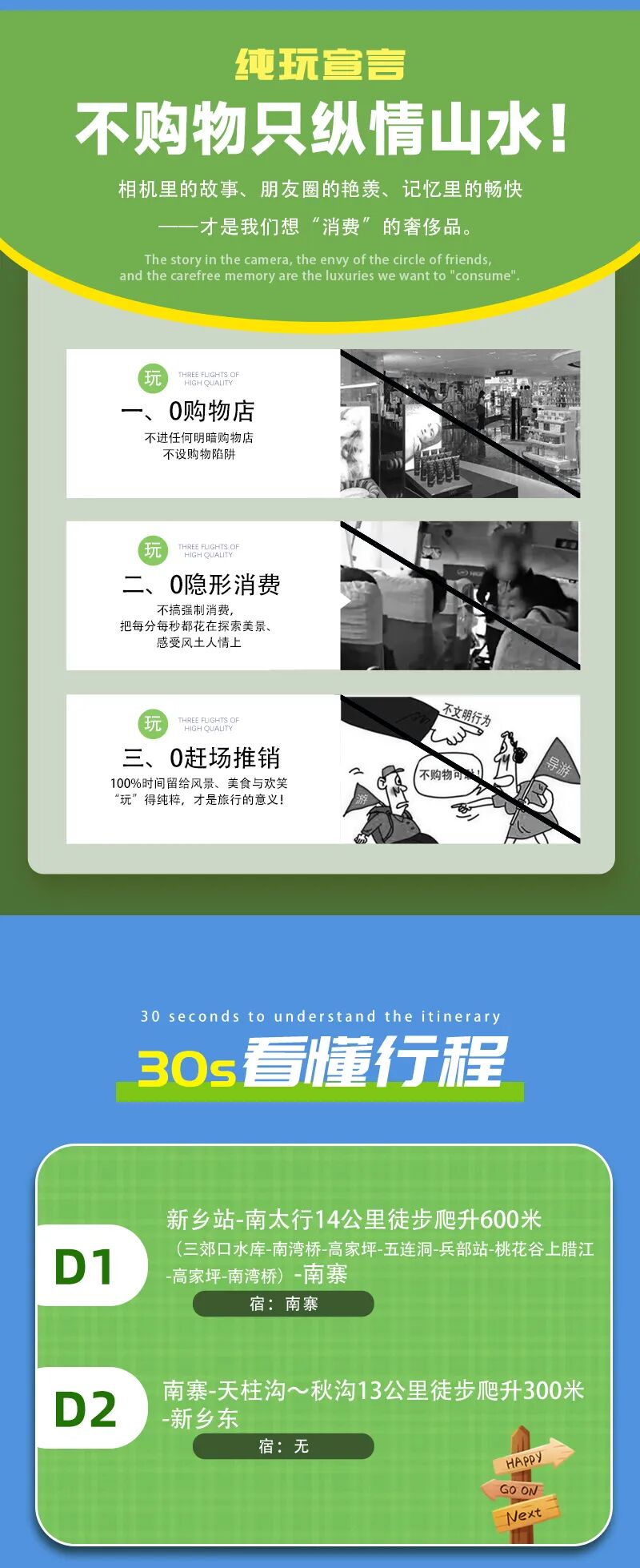 1)本活动属于户外旅行活动,纯玩,全程不进购物店,没有任何形式购物环节,领队也不作购物推荐,敬请谅解;同时本活动所有费用已明示(包括有可能您自愿自费的项目),无其它任何收费,请您仔细阅读费用包含和费用不含内容。