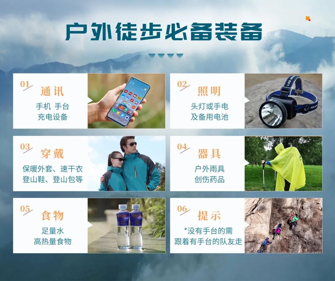 8.其它:指南针、垃圾袋,与本次活动有关的其它装备。