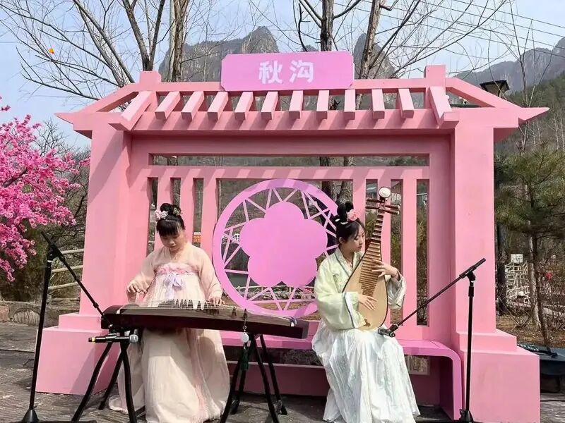 主题活动:以桃花元素和国风元素为特色,有以文创、美食为特色的桃花市集,可以品尝当地特色美食,挑选特色文创产品;设置了以桃花打造春景氛围的拍照打卡点,方便游客拍照留念;还有以国风为主题的精彩节目演艺,带来视觉和听觉的享受。2024 年桃花节期间还有千余辆机车 “骑” 聚秋沟景区的活动。