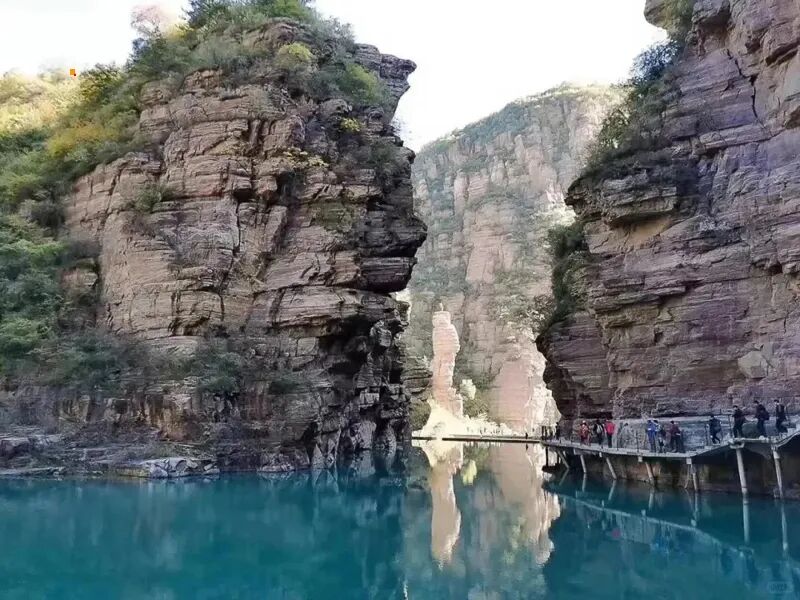 从南寨前往天柱沟我们乘车,沿途能欣赏到南太行的乡村风光,有农田、村落,远处是连绵的太行山。进入天柱沟后,首先打卡 “天柱”,一柱擎天的壮观石柱,柱顶有棵翠树,从不同角度看有不同的形态。会路过一些废弃的村庄,如葫芦双,可以看到雄浑的太行红色石柱、碧玉般的柿园水库,还有蜿蜒的林间小路。途中可能会经过一些古老的石板路、石屋等,感受当地的历史韵味。到达秋沟最高点三山垴,这里可以俯瞰周围的群山和桃花美景。