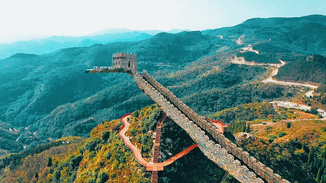 打卡理由:雄伟壮观的齐长城文化长廊是根据春秋战国时期齐长城虎头段1:1复刻而来。拾阶而上,仿佛看到当年挥斥方遒的英雄豪杰矗立在城楼,马蹄阵阵,声声入耳,感受春秋首霸和战国七雄的盖世雄风。红叶柿岩出于对齐长城文化的敬仰和保护,向世人展示中华文明的源远流长,特在原来古道的基础上增设挑空设计,最大程度还原齐长城原貌。