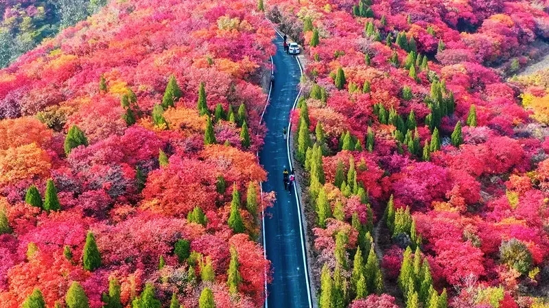 打卡理由:这就是去年在朋友圈爆红的“网红醉美公路”。每到秋季这里便红叶如云,一眼望去,就是一幅颜色鲜明的水彩画。白云苍狗、远山如黛、红枫铺满地,白云、蓝天、青山,更加映衬出那红的鲜艳,红得那么热烈,红得那么妖娆,流光溢彩,层林尽染,壮美惊艳。