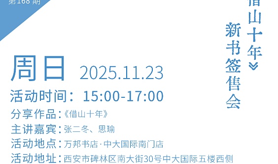 WANBOOK阅读+沙龙 | 张二冬《借山十年》西北首发签售会